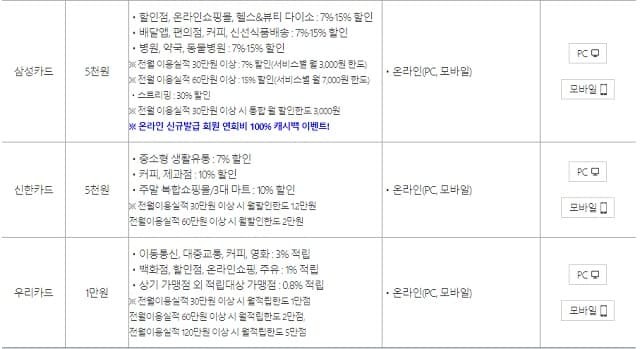 | 현대카드 신청 바로가기 | 신한카드 신청 바로가기 |