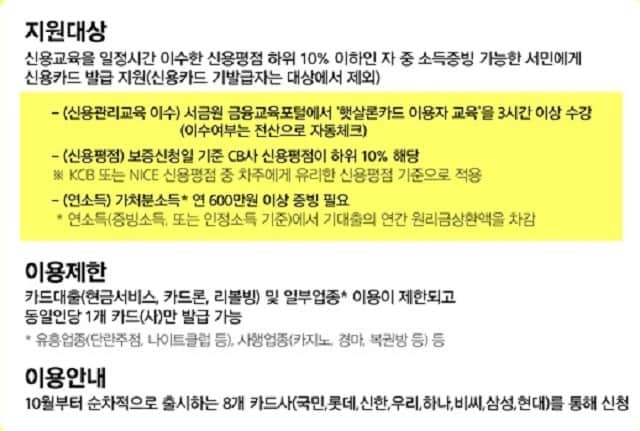 신용카드 발급이 어려워 할부 포인트 등 이용혜액에서 제외된 저신용자분들의 금융상품 선택권을 확대하고 소비로 이루어지게 신용카드 발급을 지원하고 있습니다.