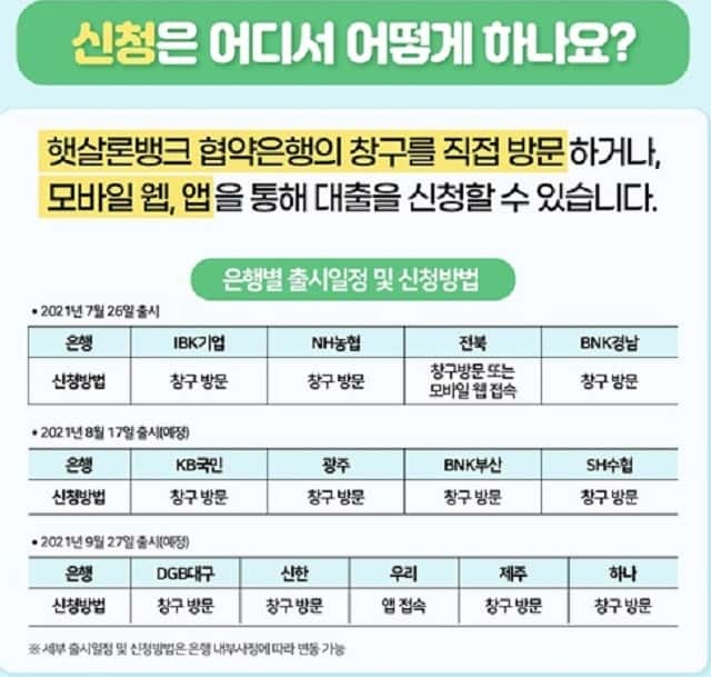 협약은행 창구 / 앱을 통해 신청