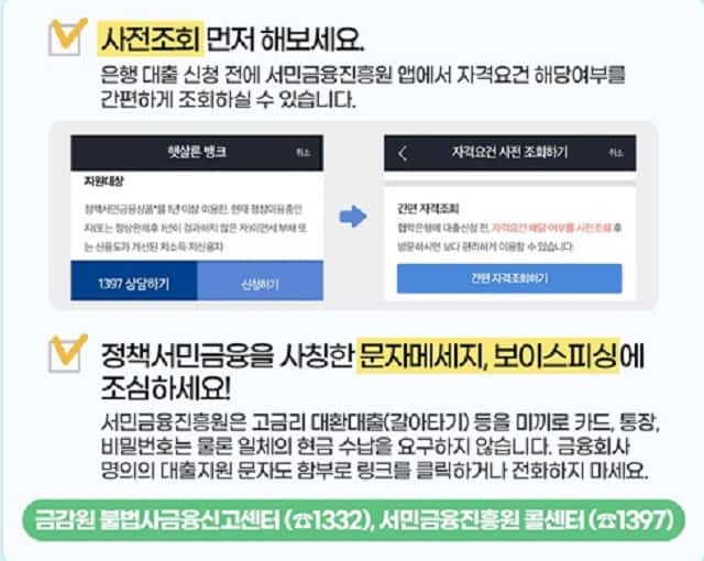 대출신청 전 서민금융진흥원 앱을 통해 자격대상 여부를 조회 후 은행을 방문하시기 바랍니다.
