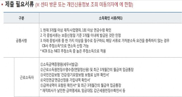 - 연가처분소득 600만원 이상 : 21년 10월 27일 기준 KCB 기준 655점 NICE 기준 724점 이하 해당하며 이용자에게 유리한 신용평점 기준으로 적용